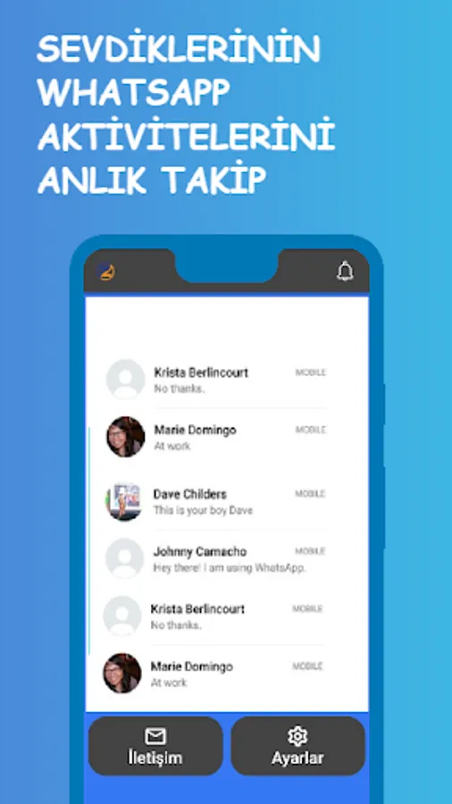 Kolay ve hızlı bir şekilde whatsapp aktivitelerini online takip yapabilirsiniz. Size ve sevdiklerinizi önemsiyoruz ve işlerinizde size yardımcı olmak istiyoruz. Aklınız sevdiklerinizde kalmasın. Sevdiklerinizi korumanın kolay bir yolunu sizlerde tanıştırmamıza izin verin. Anlık aktivite Çevrimiçi takip ve son görülme takip kullanarak sevdikleriniz ve yakınlarınızın aktivitelerini takip edebilir ve detaylı analiz sayesinde Tüm kullanım aktivitelerini raporlayabilirsiniz.