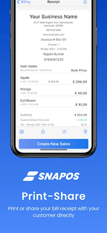 Instead of a cash register, start using the SNAPOS point of sales app for sales tracking, customer data management, all-in-one sales report, share the invoice digitally through the mail, Whatsapp, SMS, and more.