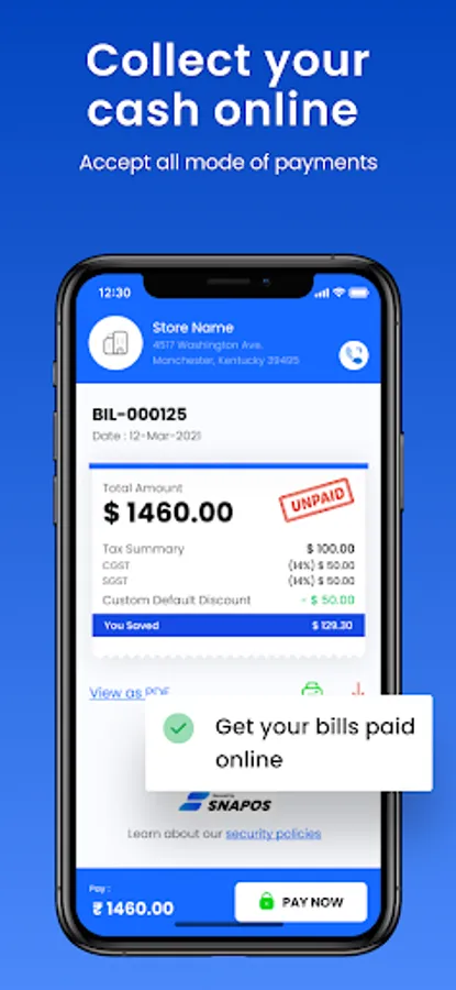 Customer management is made effortless with SNAPOS simple POS app. You can check for customer pending and completed payments. Further, you can send SMS, mail, or WhatsApp regarding the balance payment to your customer directly from the SNAPOS app itself.