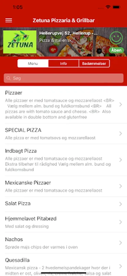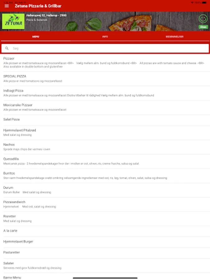 Med Zetuna Pizzaria & Grillbar app på telefonen, har du madbestilling lige ved hånden.