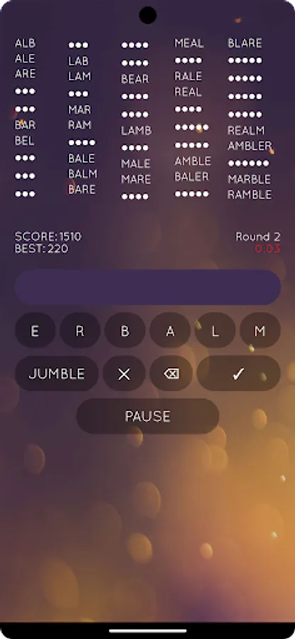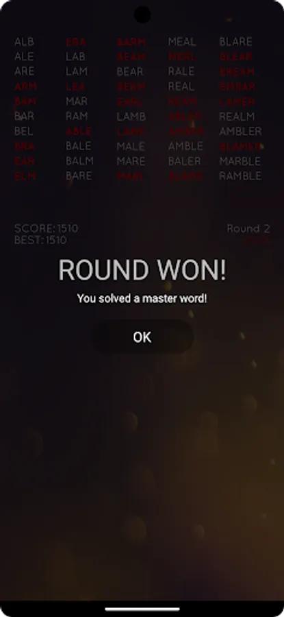The goal of Wordmaster is to help the player learn new words and eventually master the English vocabulary. To this end, Wordmaster gives you two ways to win each round: solve one of the 6-letter words or solve at least 50% of all words in the round.