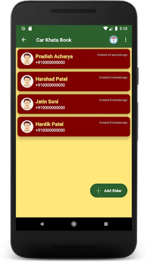 - Add a car rider to Car Khata Book.
