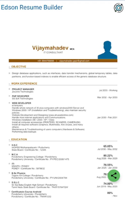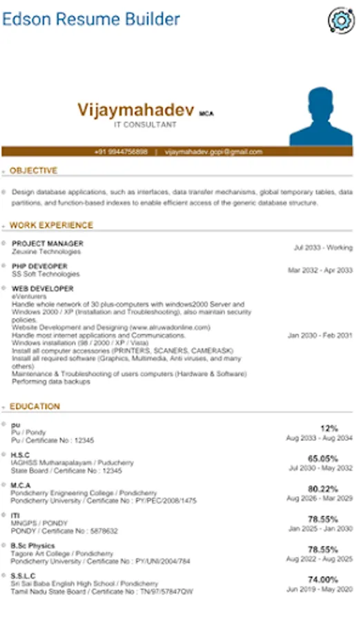 Edson India Resume Builder and Editor app with perfect PDF template format help you to create your professional resume just in few minutes. The main features of Edson Resume Builder app with perfect PDF template format. You can create your professional resume just in very few minutes and also you quickly create it for any kind of profession.