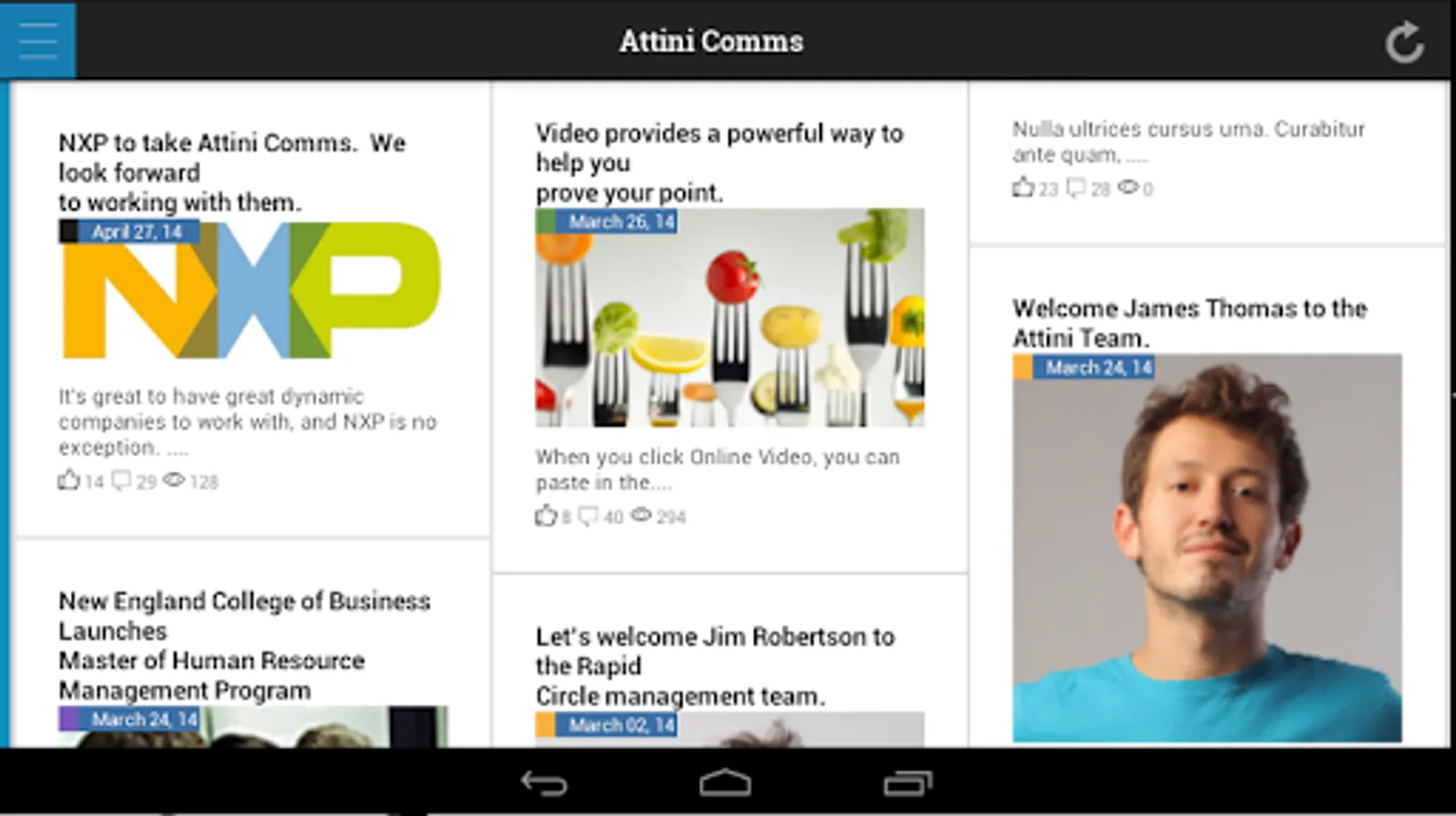 Attini Comms is an end to end news solution for Office 365. From a simplified publishing experience, targeting of articles based on profile, and a reading experience delivered via native apps on SharePoint, Win 8, Windows Phone, iPhone, iPad and Android.