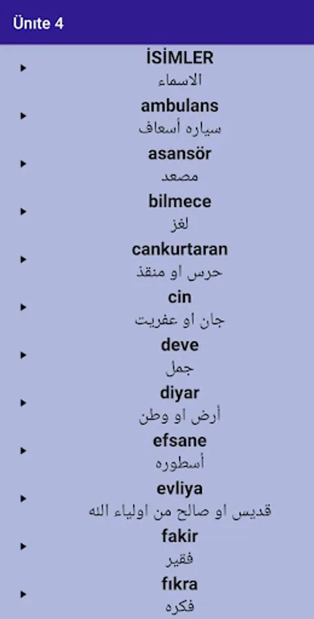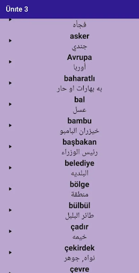 This application contains all the vocabulary of the second level Istanbul book with the correct pronounciation of words in the Turkish language