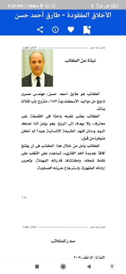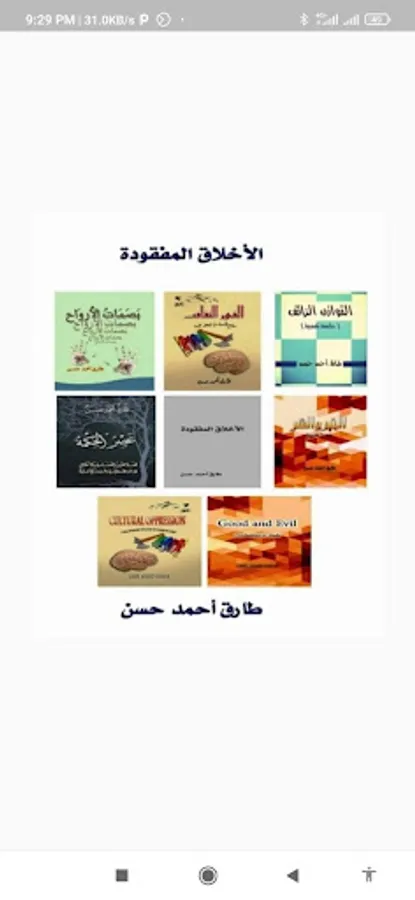 “The lost moralities” is an application which includes a series of books by the writer: Tarek Ahmed Hassan. They are respectively called: “false balance”, “The age of wisdom”, “Good evil”, “Cultural oppression”, “The fingerprints of spirits” and “The lost moralities”