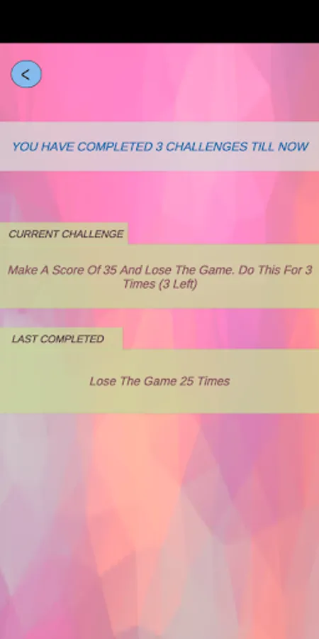 * There are so many easy and hard challenges in this 3D game. In the challenges section, you will get current and last completed challenge and the number of challenges you have completed yet.