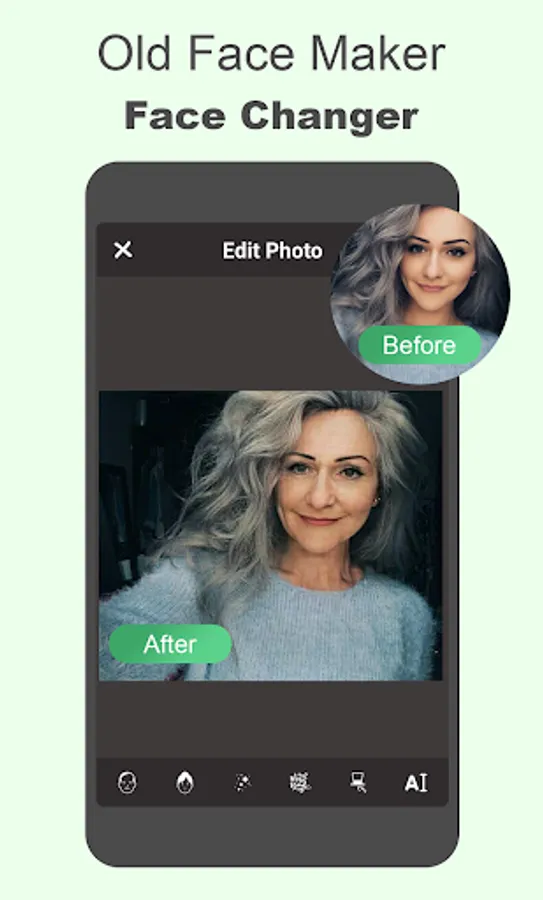This photo booth app lets you change your appearance from young to aging, or nearly aging to really aged.