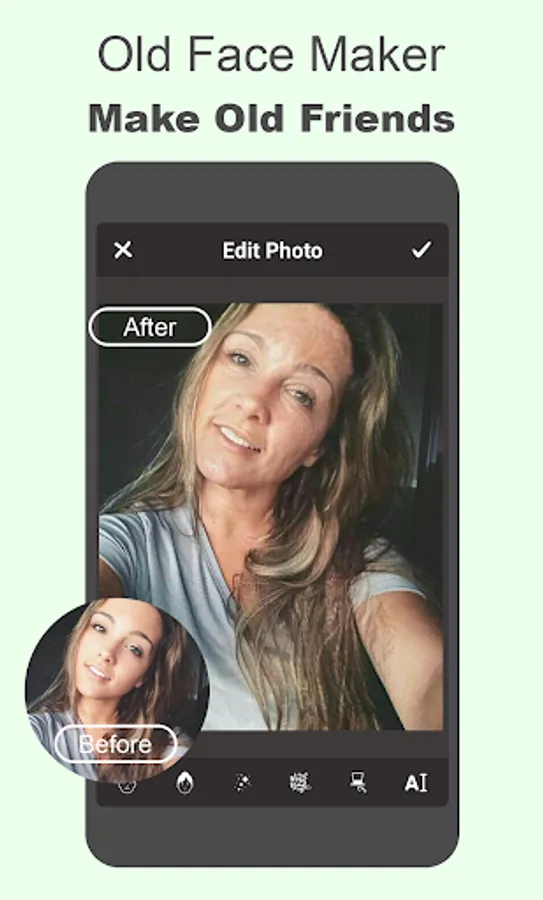Use different stickers to add wrinkles & gray hair and easily make an older version of you.