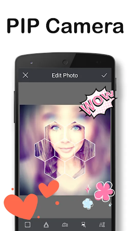 PIP Collage have a lot of features for photo editor and PIP Magic, add stickers on photos, add quotes, funny emojis and cute texts.