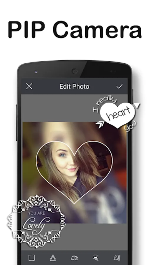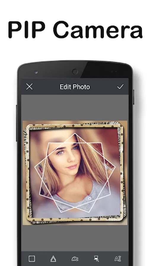 Picture in Picture effects very easy to use, just select photo from gallery or camera and edit them.