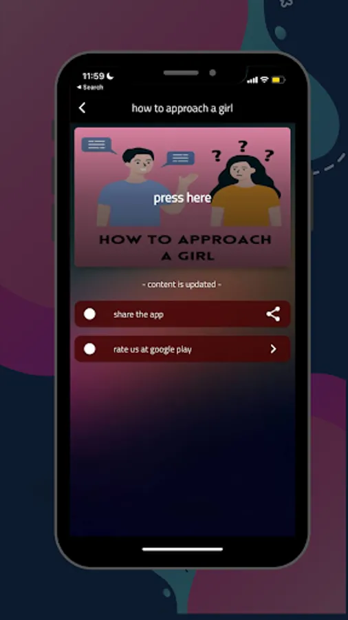 With a simple and user-friendly interface, how to approach a girl offers step-by-step guidance on how to approach a girl in different settings, such as at a bar, club, or coffee shop. It also offers tips on how to read a girl's body language and signals, and provides conversation starters and icebreakers to help you get the conversation flowing.