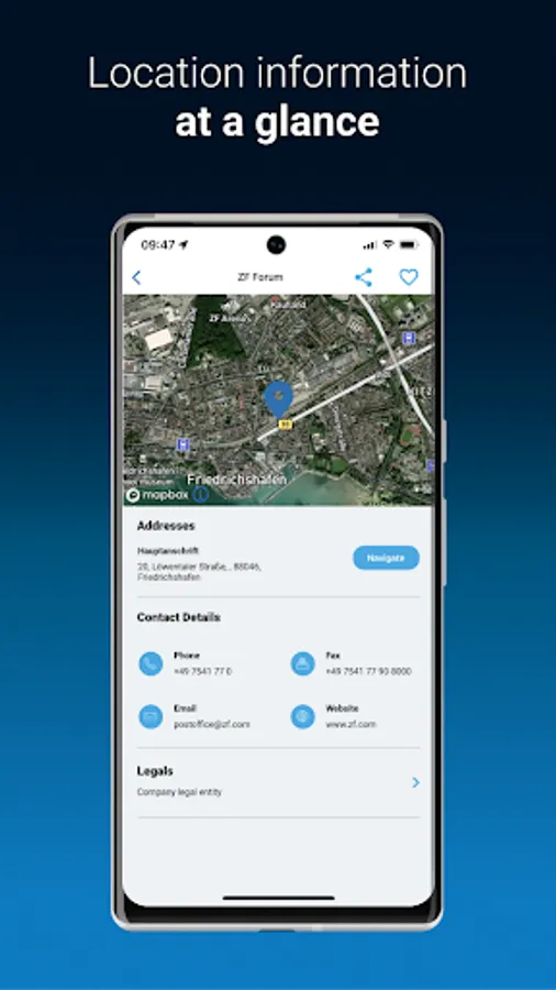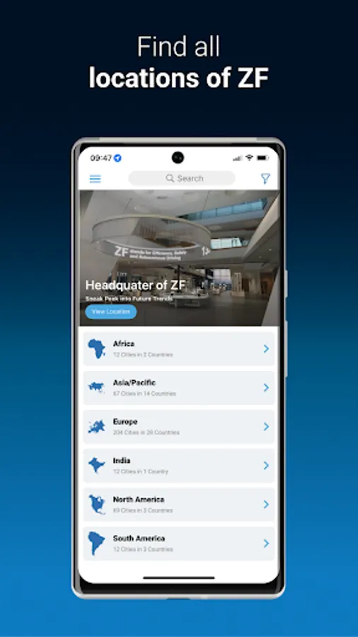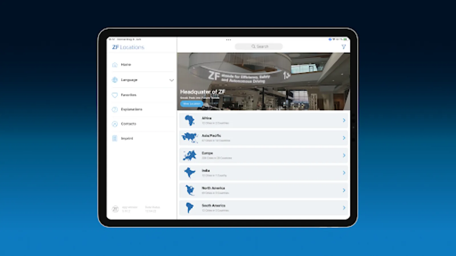 The ZF Locations App provides an overview of all ZF locations worldwide. It is easy to find the locations via an intuitive list and map navigation. The detailed view of a location offers the location’s address, contact information and, if available, directions and location plans. Individual locations can be displayed on a map using geolocation. It is possible to start navigation to the location immediately. The app does not need a data connection. Only the location indicator on the navigation map requires a mobile data connection. Supported devices are iPhones, iPads and iPods. Supported languages are English and German.