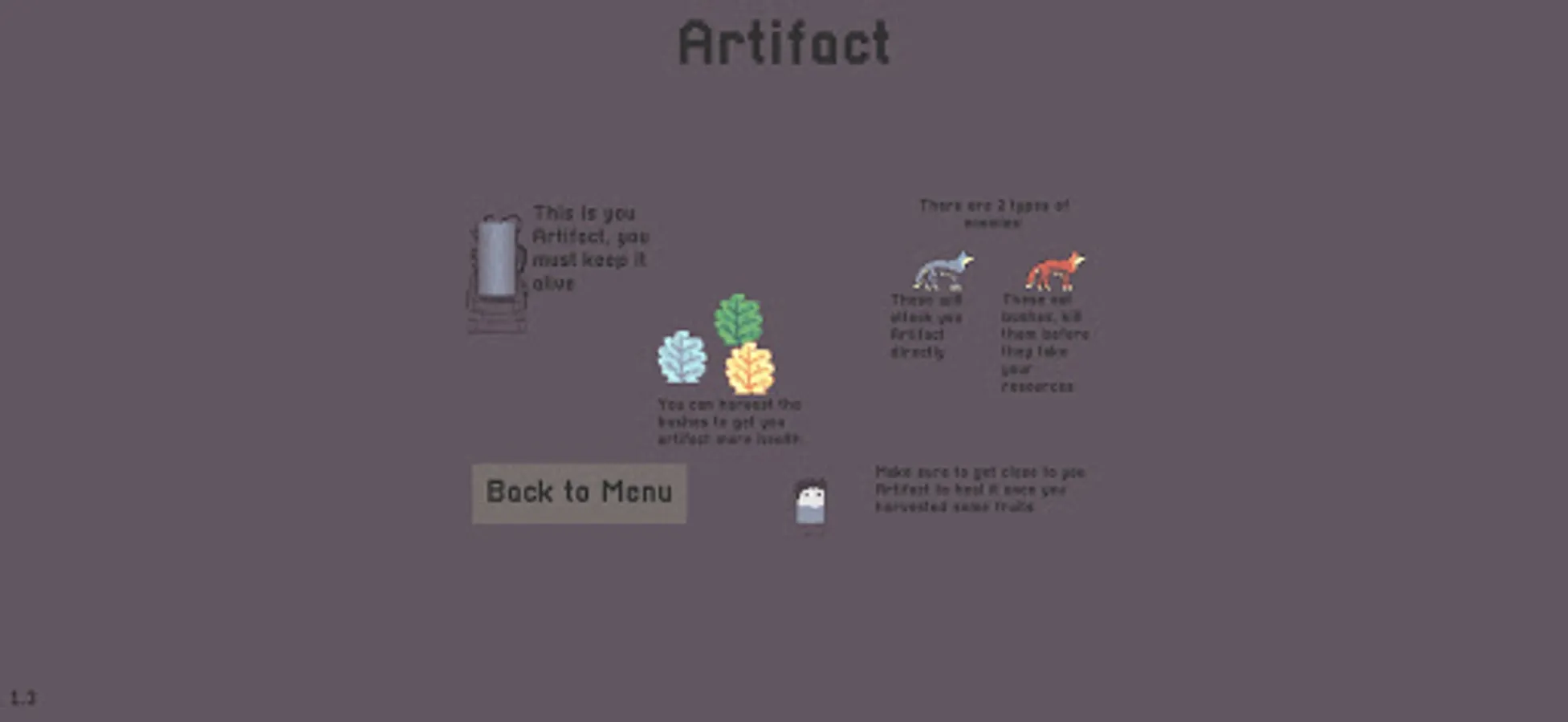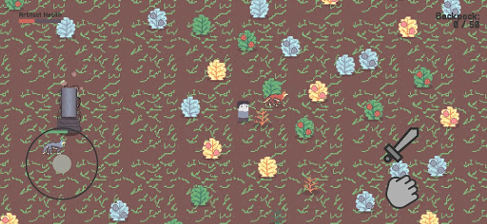 You must collect resources to maintain the health of the artifact, while you need to fight off the wolves that attack your artifact, and drive them away from the bushes with resources.