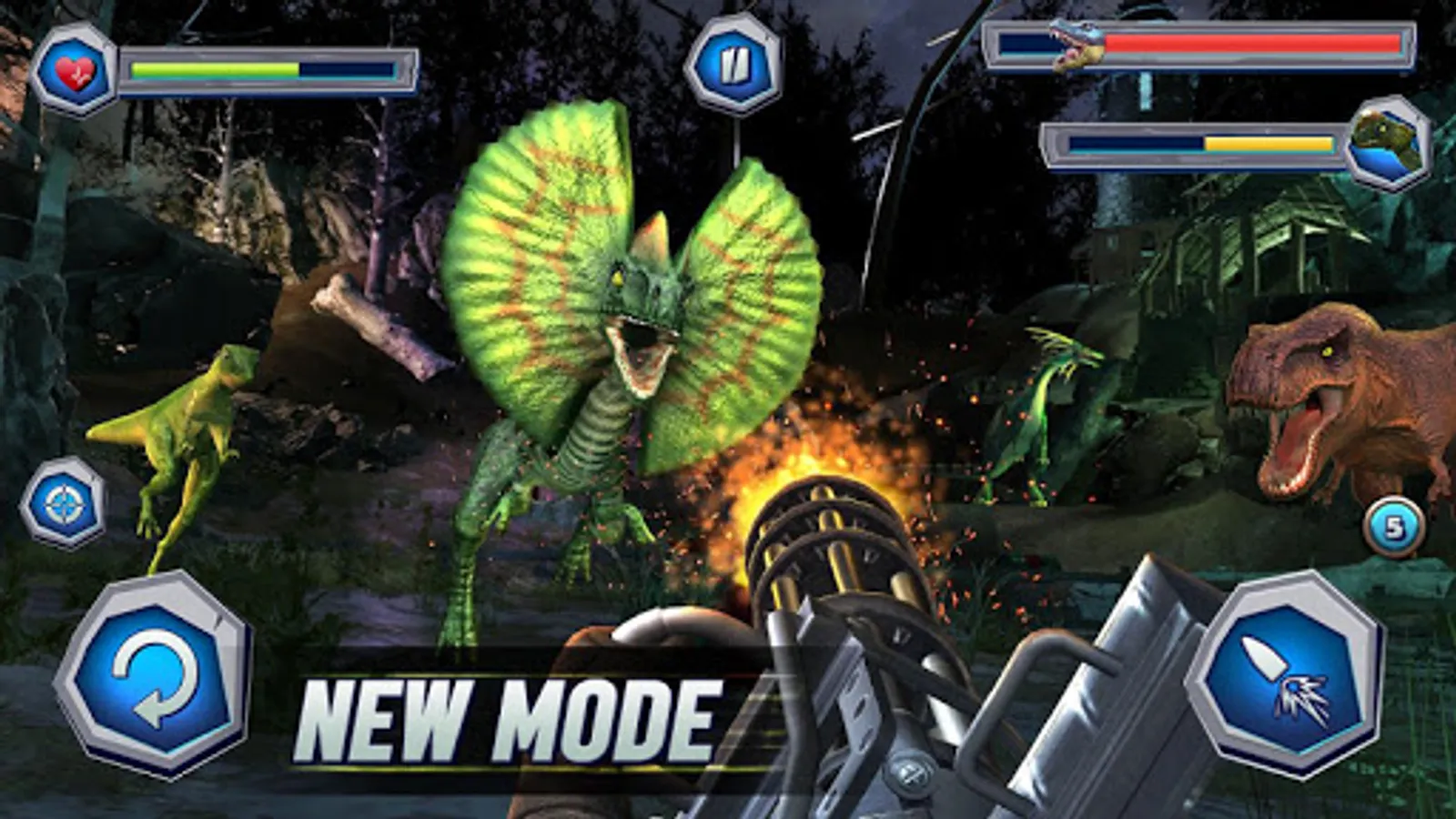 Wonderful firing sounds of hand gun, pistol and rifles in dinosaur games.