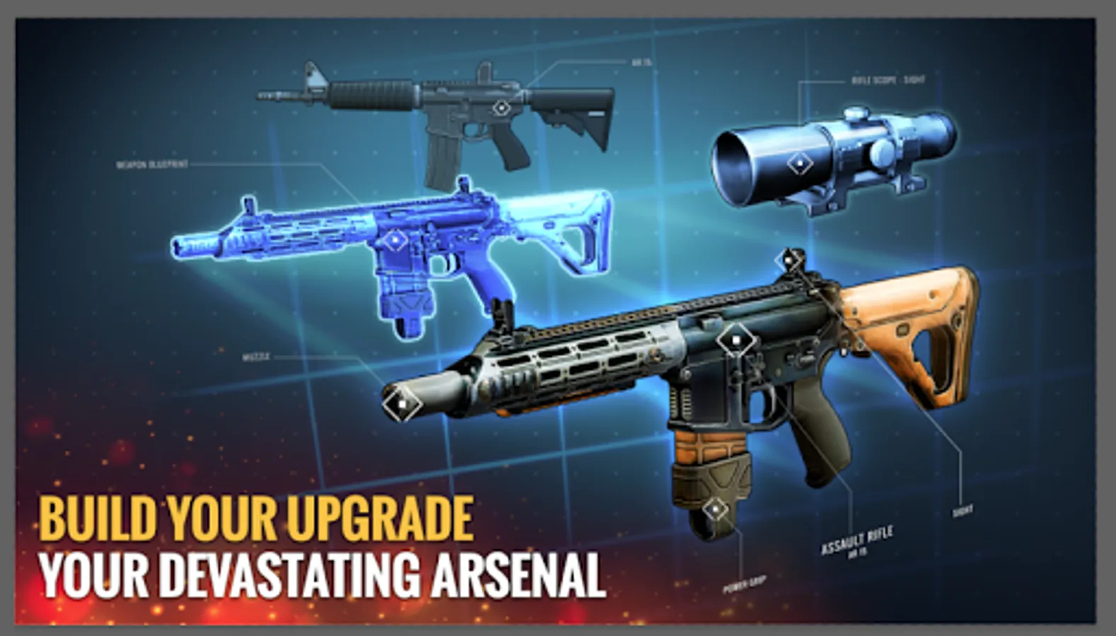 Variety optimized assault guns and sniper riffles in dinosaur hunter game.