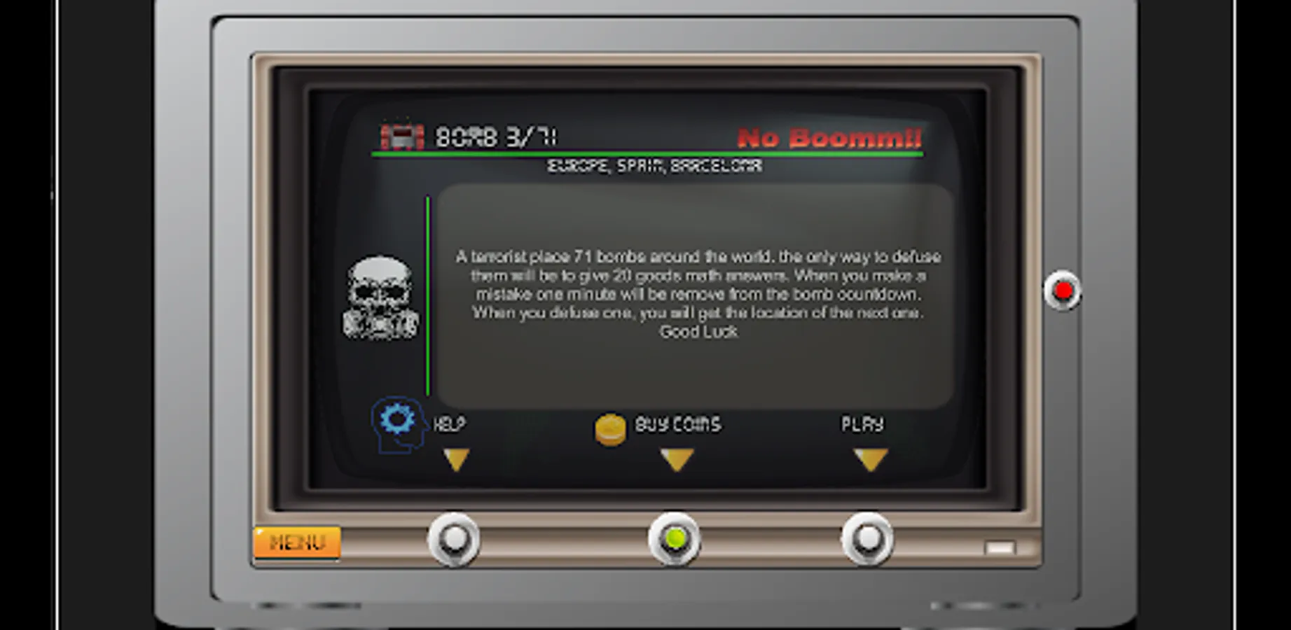 a terrorist has planted many bombs in the world. you as a minesweeper you have to disarm these bombs through correct mathematical answers.