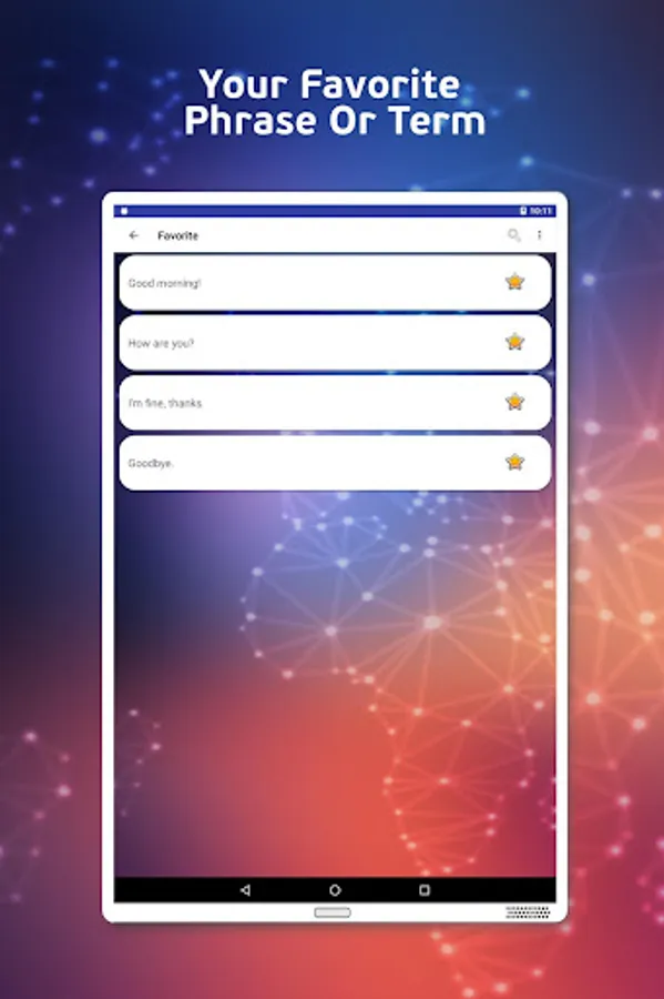 If you want to create your own category with your favorite phrases, you can do it through the option "favorite", by simply clicking the star icon positioned right from the English phrase.