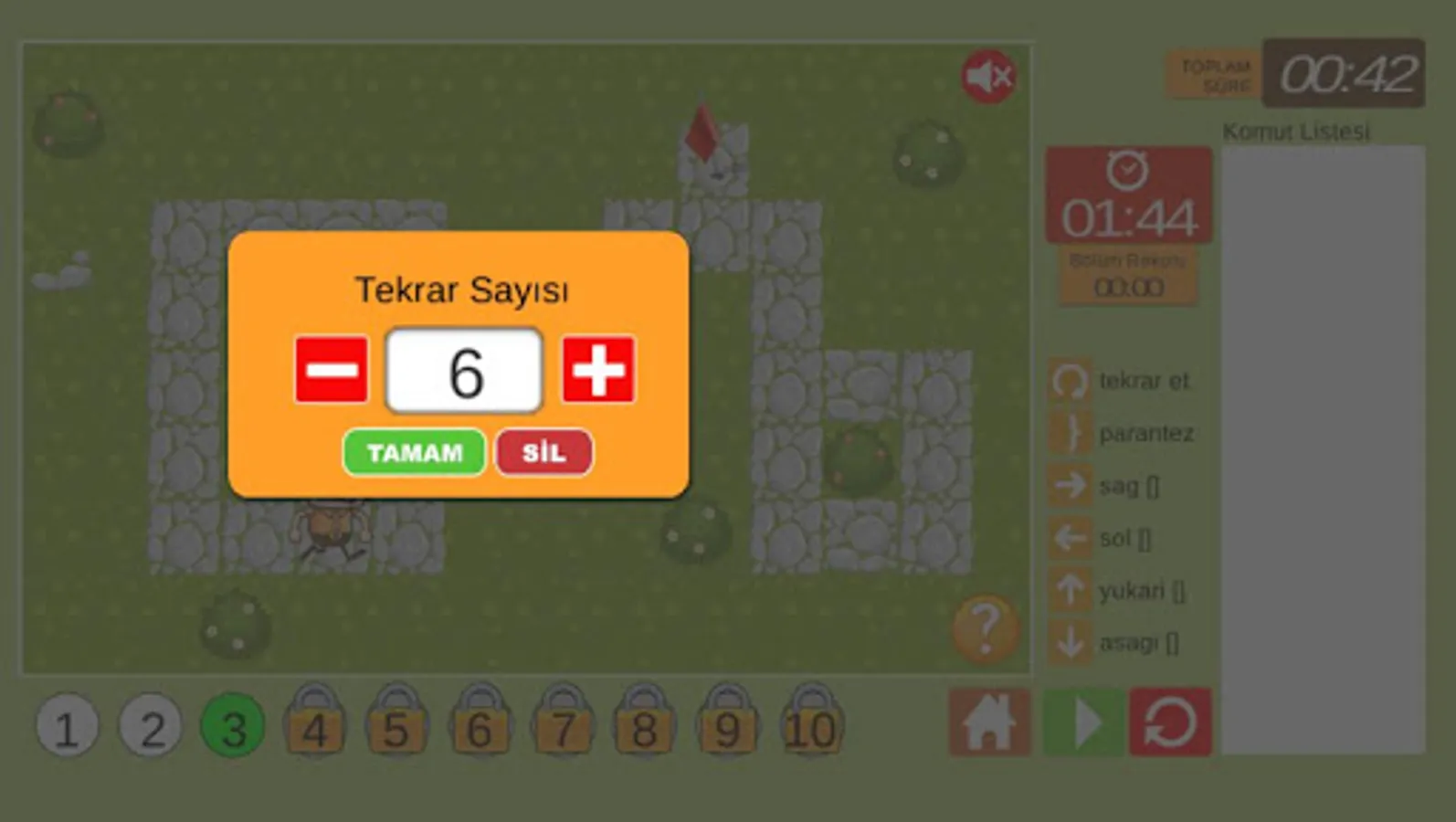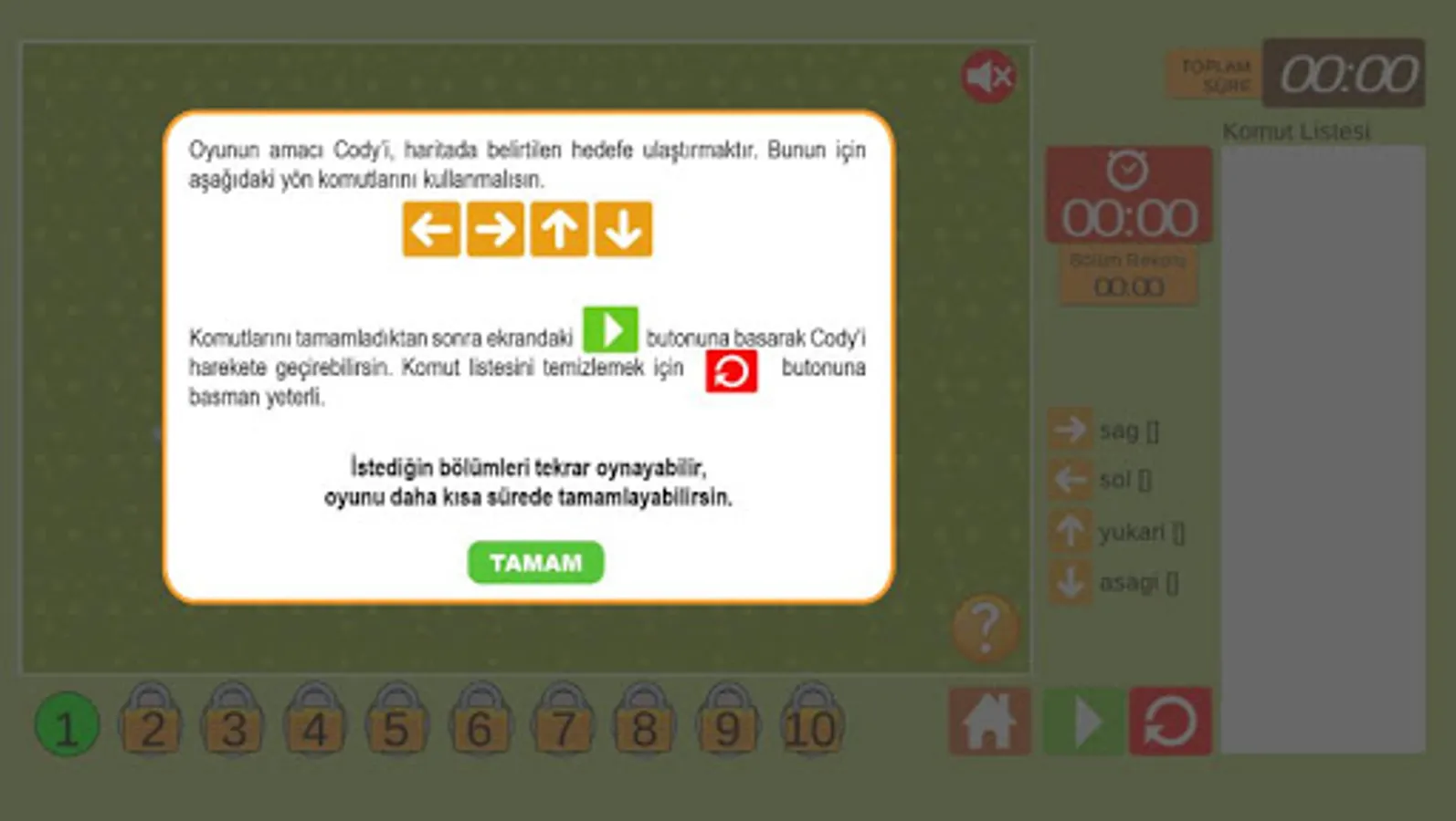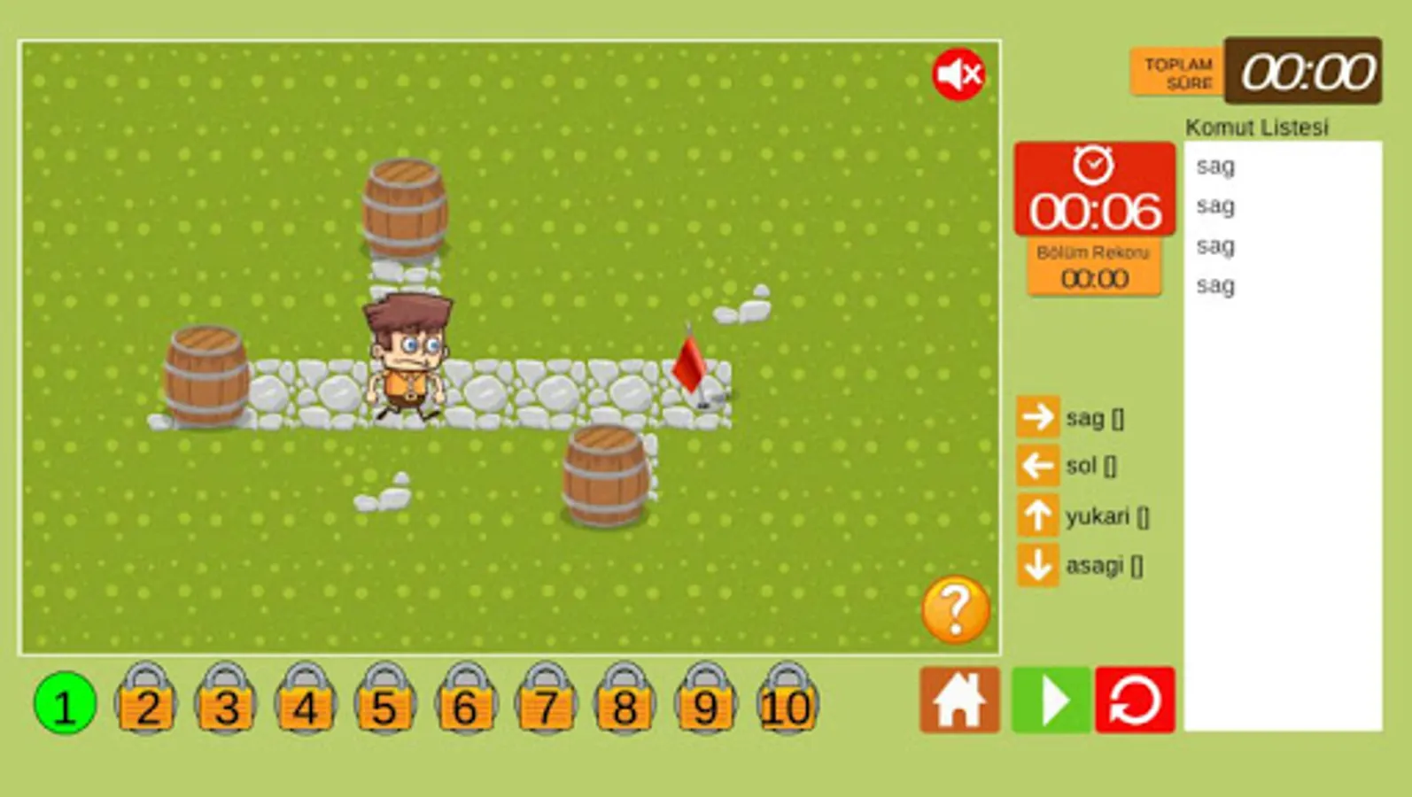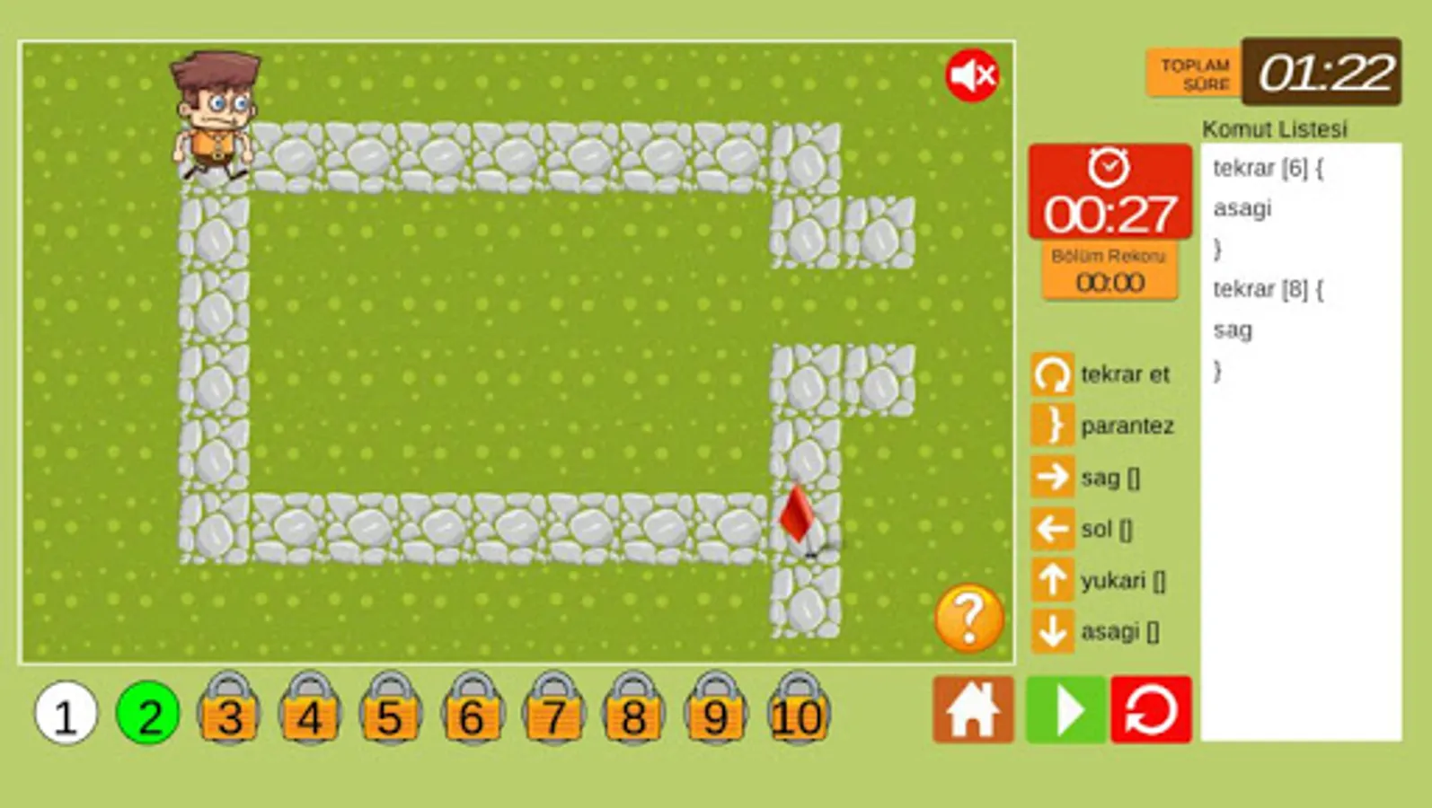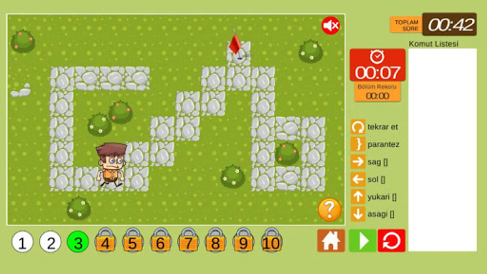 The time variable is also included in the game. It is tried to write the algorithm as soon as possible and reach the goal.