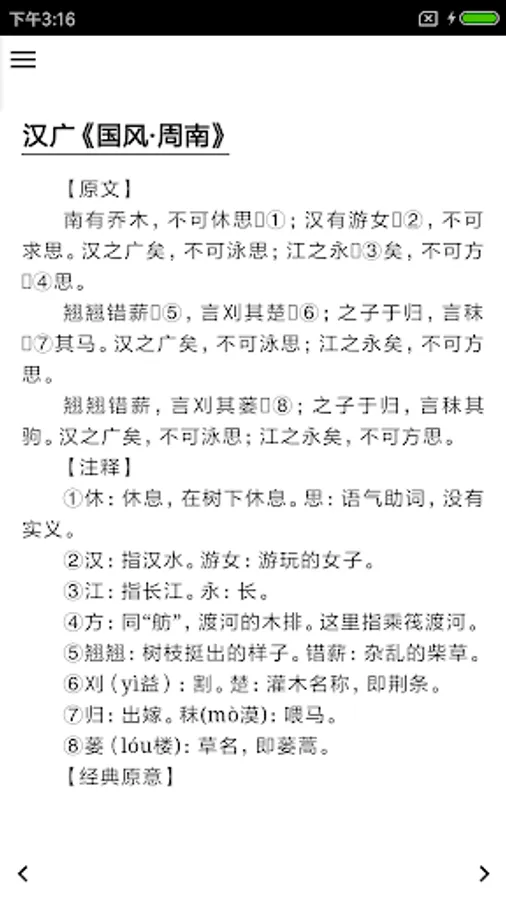 In the "Book of Songs Interpretation" app, we will translate and analyze the original content of the "Guofeng" in the "Book of Songs" in detail, which will make your study and understanding more convenient. How extensive and profound is the Chinese culture in it. I hope that the classics of Chinese Sinology and Chinese civilization can be passed on forever.