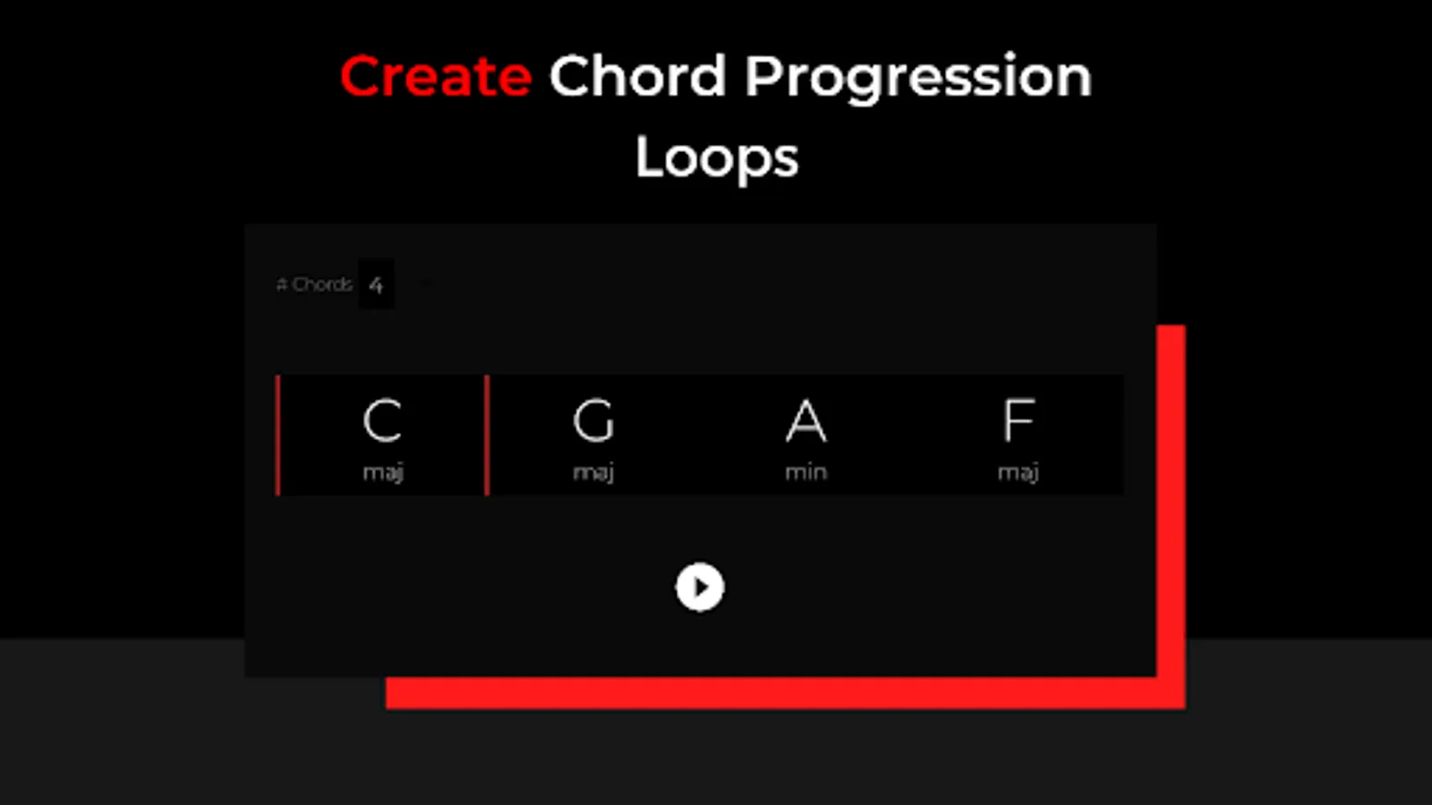 The App allows you to create a chord progression loop instantly that you can play and practice to. You can easily select the chords (maj, min7...) and browse different sound packs.
