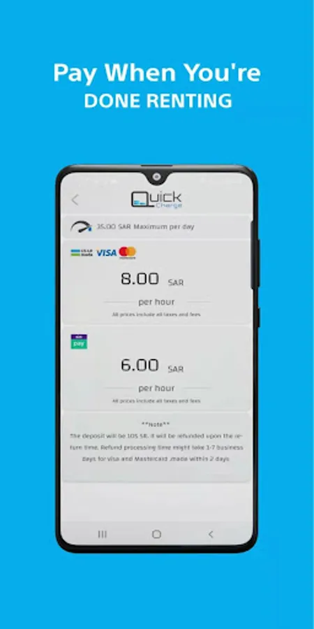 -Multiple payment methods, QuickCharge support mada debit card, Visa, Mastercard, and STC pay