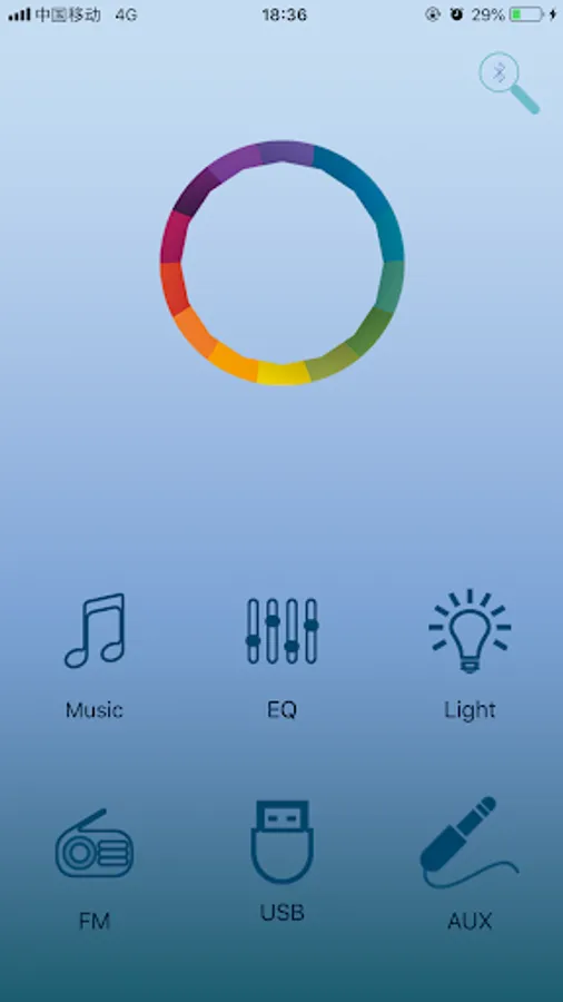 The Colorful Kit App is mainly used for interactive control of Bluetooth speakers, Soundbar etc. The App gives the user full control over the Music Play, Controlling the source of music(UDisk, Bluetooth Music, FM, AUX), Equalizer control, Color control of the light, Record control, FM and AUX control.