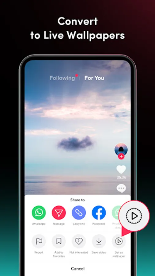 Whatever you desire, find it on TikTok, download it with the video downloader, and set it as your wallpapers & lock screen - that's video to live wallpaper within minutes!