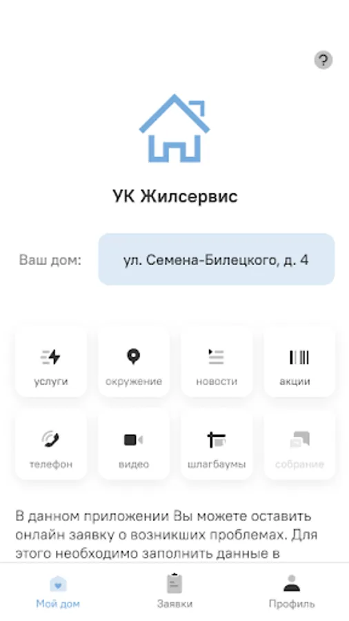 This application allows residents of Zhilservis and Comfortservice residential complexes to monitor their home, view the surroundings of their homes and submit applications to the control room.