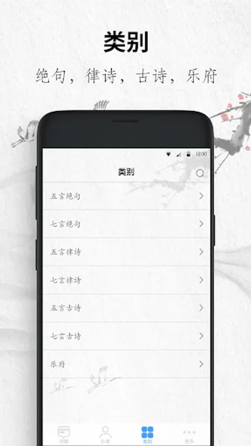 Tang poems are divided into eight categories: five-character ancient poems, seven-character ancient poems, five-character Yuefu, seven-character Yuefu, five-character rhythm poems, seven-character rhythm poems, five-character quatrains, and seven-character quatrains.