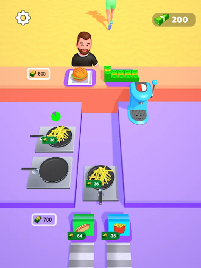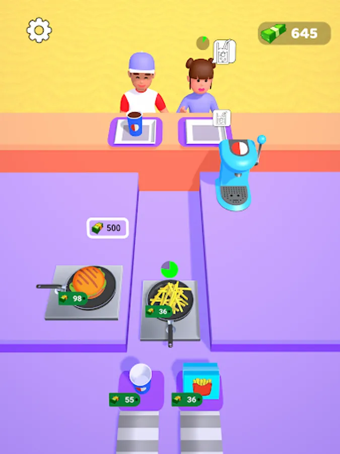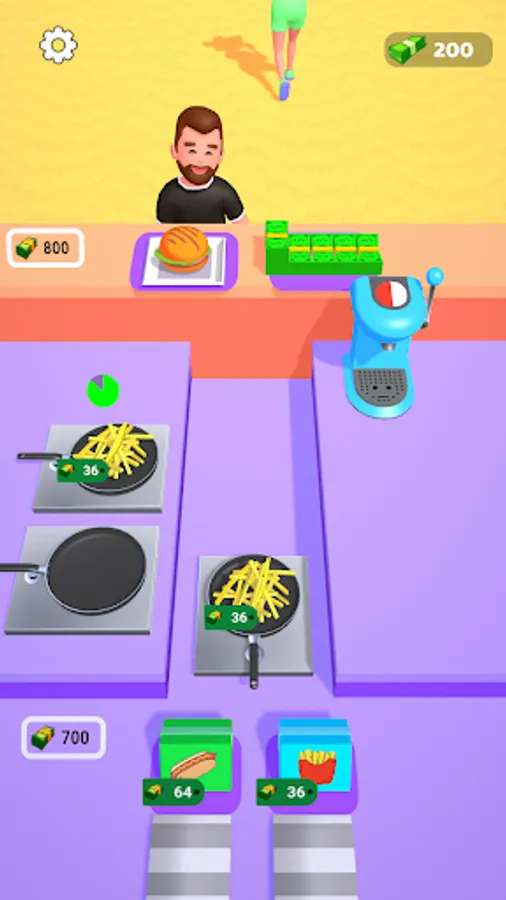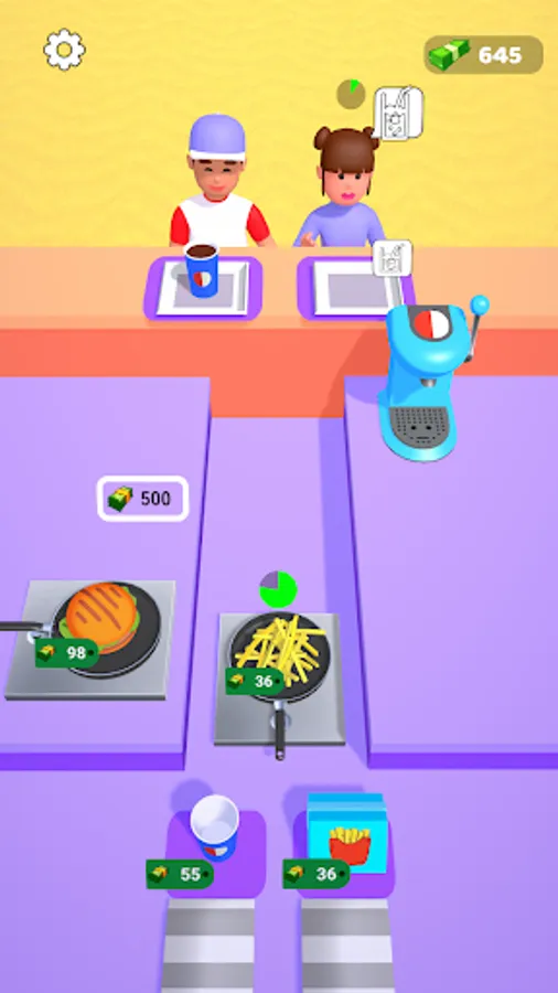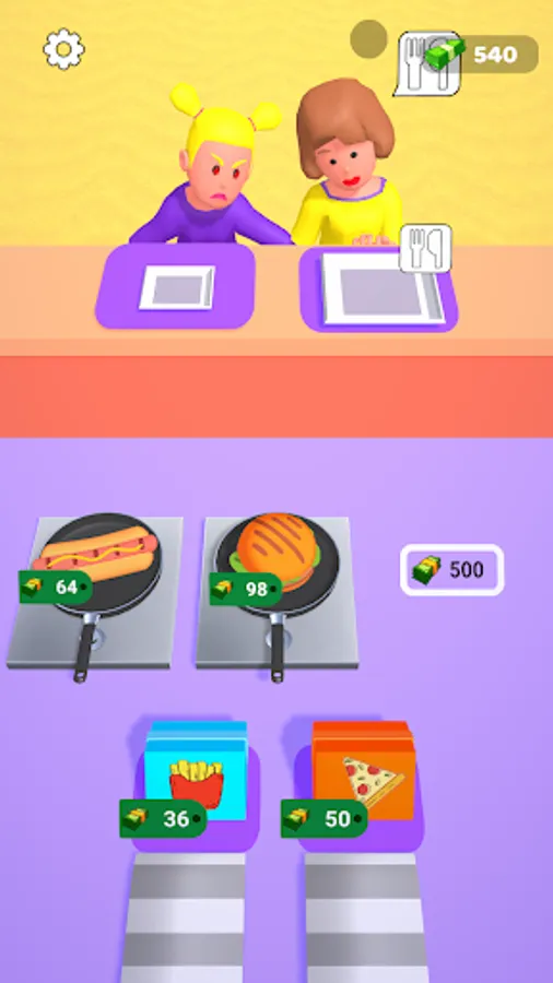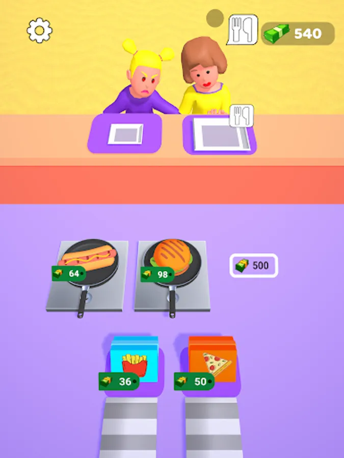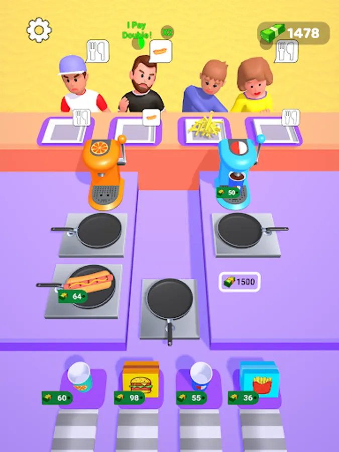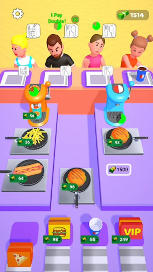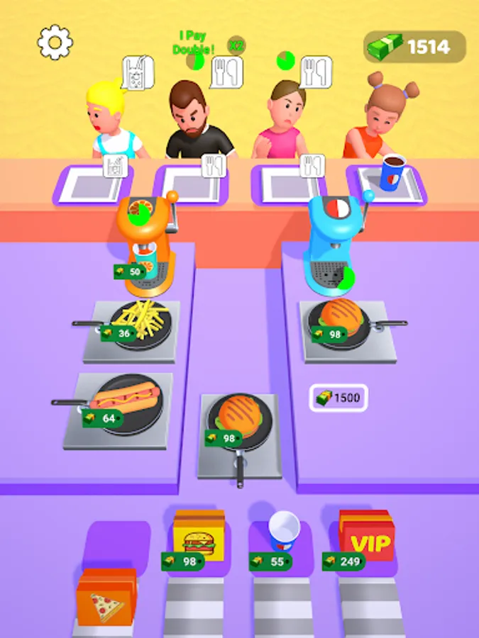 Don't make customers wait too long or they will leave disappointed. Sell food, earn more money, and unlock more cookers and varieties.
