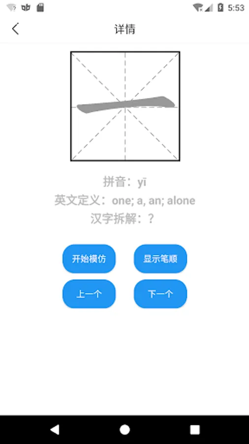 Commonly used characters (Chinese characters), rare characters, radicals, the stroke order writing of radicals, and pinyin (pinyin) have also been marked on the App. Learn the correct way of writing Chinese characters With more than 9000 characters, it is a good helper for you to learn Chinese characters. The words that have been practiced have a memory function, so you don't have to repeat the practice. Each text will be translated into English, so that you will have a deeper memory of learning Chinese characters.