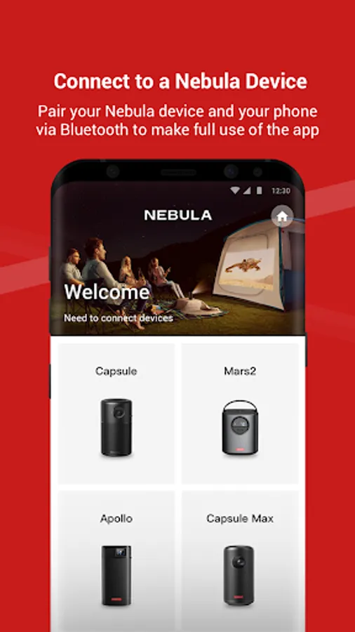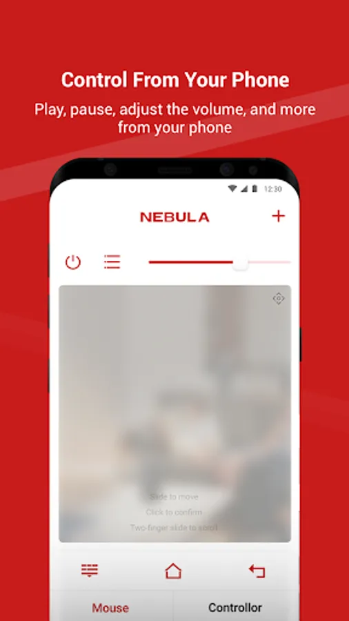 Nebula Connect works together with your Nebula smart projectors. It can seamlessly control your projector with the touchpad, virtual keyboard, and functional buttons. No worries if you forget bringing the remote control, everything can be on the go with the Nebula Connect!