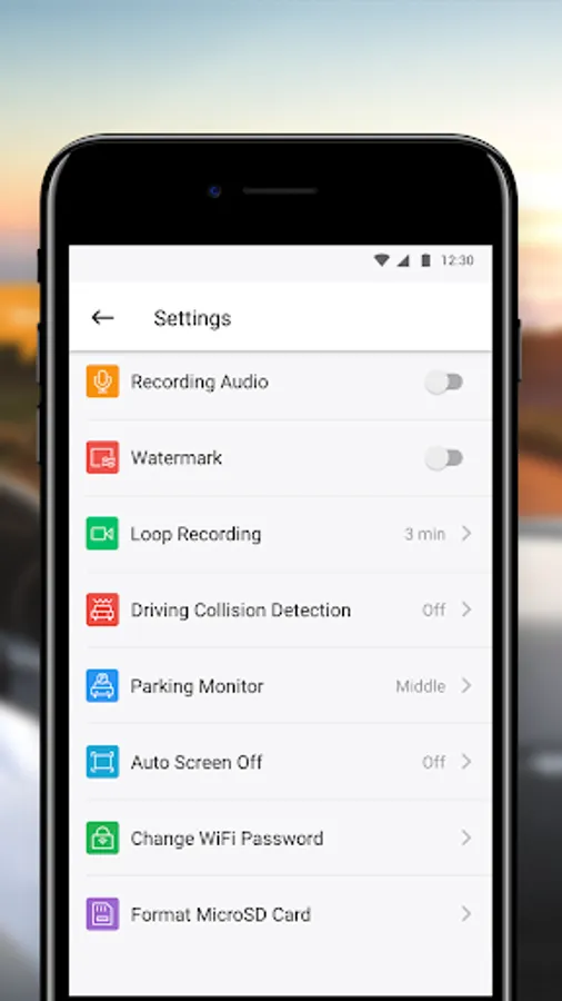 Download and share recorded videos by connecting your mobile phone with the app via the built-in WiFi.