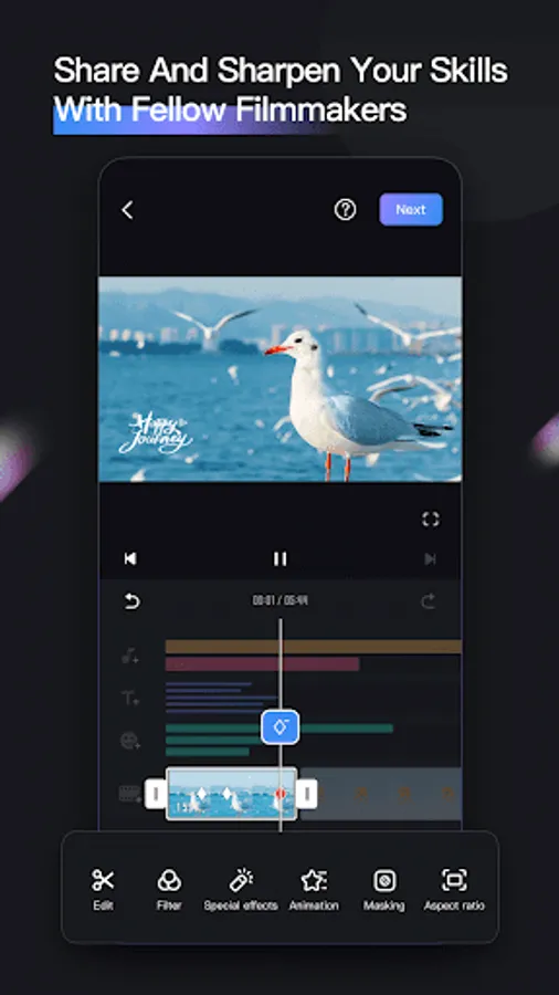 Provides transition effects, special effects, fonts, stickers