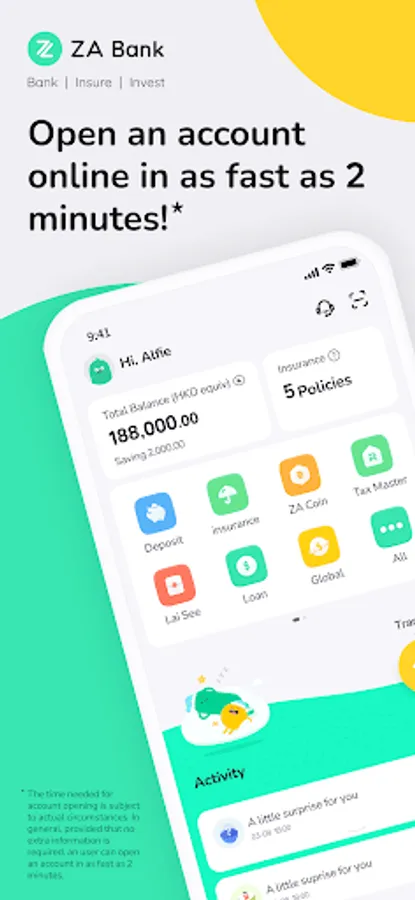 Open an account now to experience ZA Bank's convenient and secure banking services! ZA Bank is a regulated and licensed Hong Kong bank and the first virtual bank to launch in Hong Kong. ZA Bank, as “Your Future Bank for Now”, uses technology to conquer the limits of traditional banking for a more convenient banking experience!