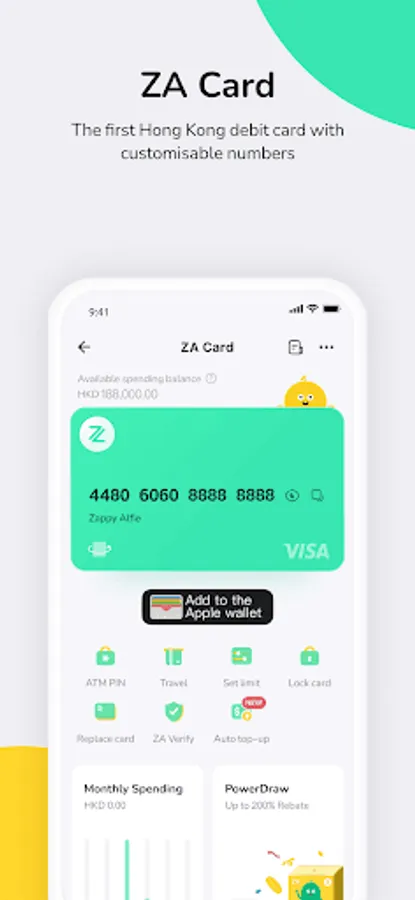Get the first Visa debit card with a customisable card number in Hong Kong! You can even apply for a physical card! To protect you from the risk of theft, there is no CVV and expiration date on the physical ZA Card, and no signature is required for payments.