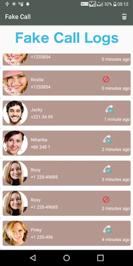5. View the Fake Call logs and manage.