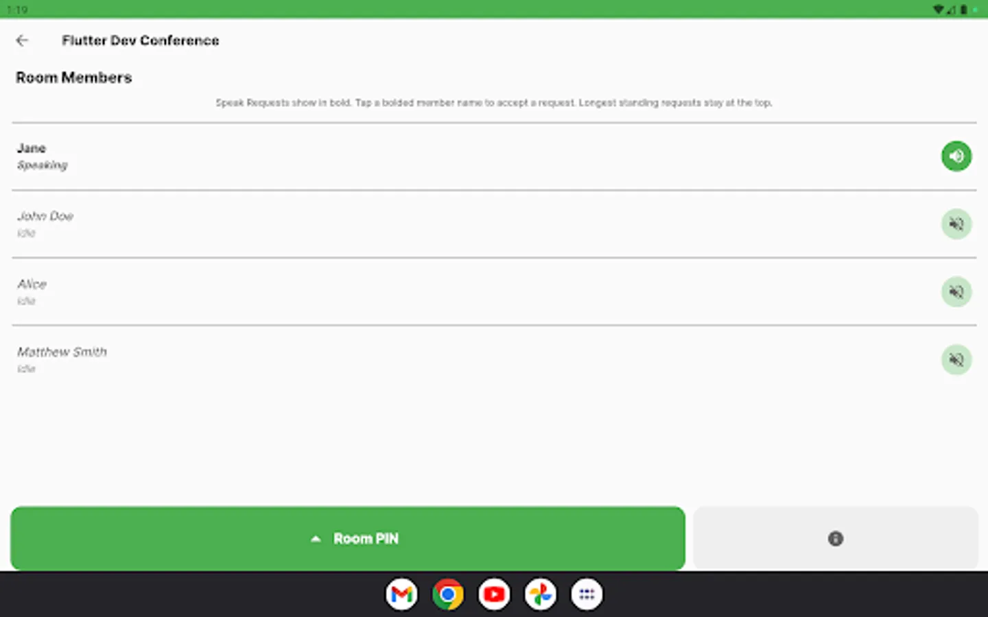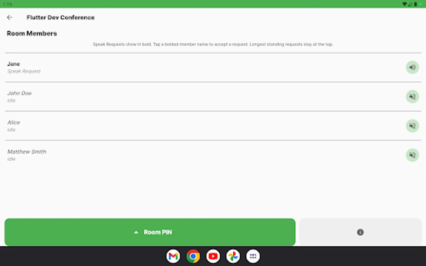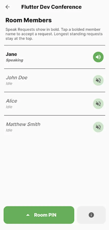 EVENT MODERATORS/HOSTS: Want to have an interactive discussion at your event? Just plug your smartphone into a PA or speaker system and start a GroupMic room. After joining your event, audience members can speak into their smartphones, and their voice will be streamed to your smartphone and played out connected speakers. No need for a mic runner. No need to pass around the microphone either. Manage audience members and see speak requests in order straight from your device.
