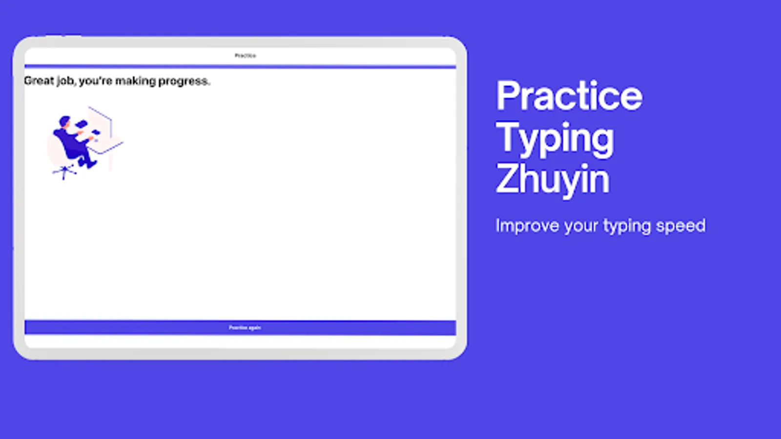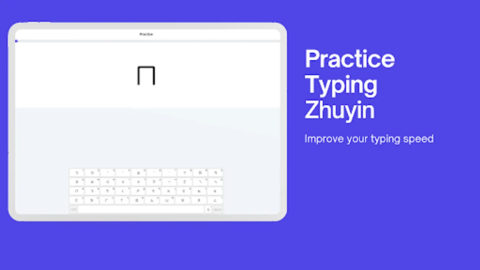 Zhuyin Trainer is an a typing flashcard app that teaches how to type Chinese using the Zhuyin/Bopomofo input method. When the flashcard for a Zhuyin/Phonetic phonetic character or tone marker appears on the screen, press the correct key on the keyboard to go to the next card. Continue to type all the characters on the flashcards until you have completed all of them.