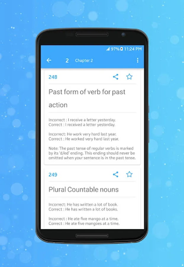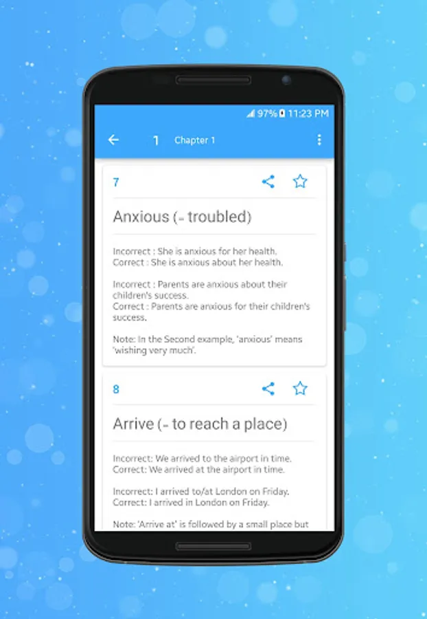 People with English as their second language make some very common mistakes while speaking or writing in English. The mistakes most of the times are grammar related, framing the questions in wrong manner or small preposition/articles mistakes. Some mistakes could be very embarrassing. With this app you can understand, learn & improve on those mistakes. You can also bookmark and share the specific mistakes, that way you can keep track.