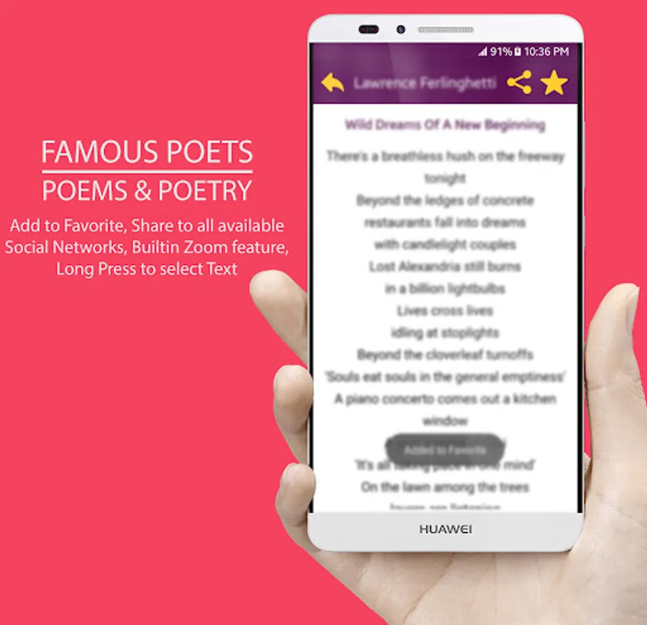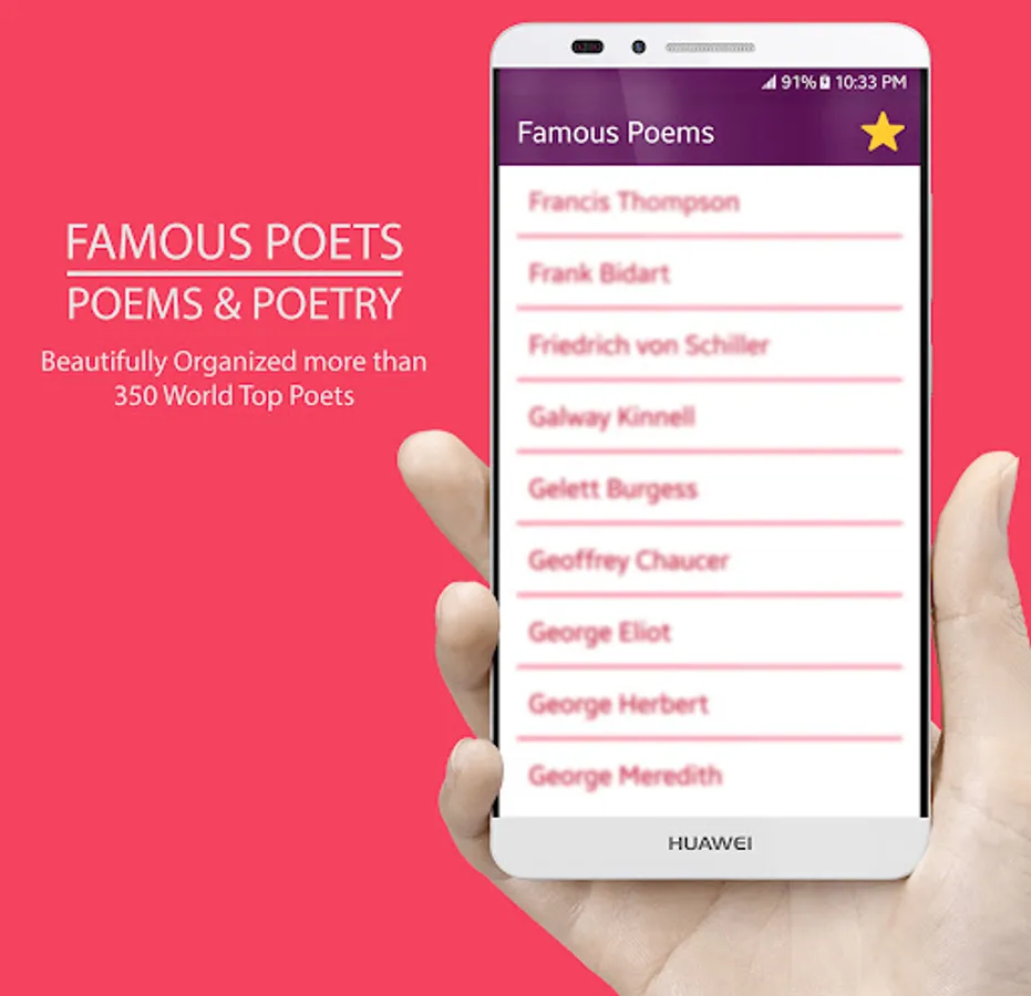 Famous Poets, Poems and Poetry provides us daily good poems allowing us to share and enrich the world with a collaborative experience. Using this Famous English Poems app you can learn aesthetic and rhythmic qualities of language.