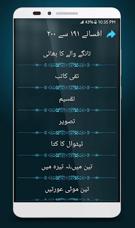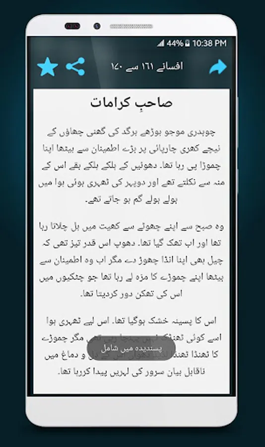 If you are a fan of Saadat Hassan Manto, you can find best stories of all time from Saadat Hassan Manto in this app. منٹو کے افسانے-Manto Ke Afsane is collection of Saadat Hasan Manto (سعادت حسن منٹو) work in Urud that is easy to use with an attractive interface design.
