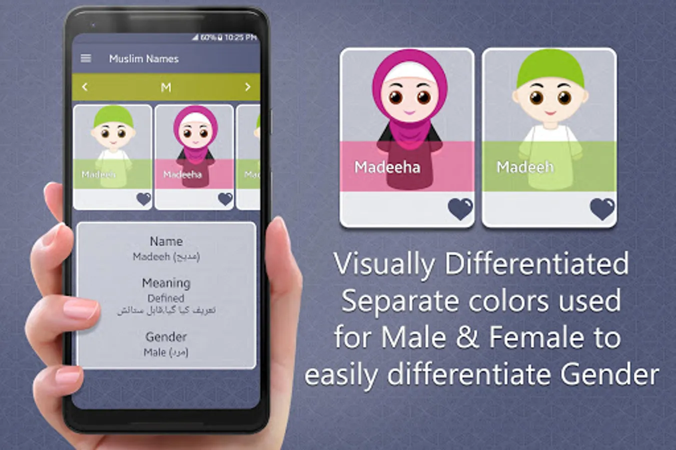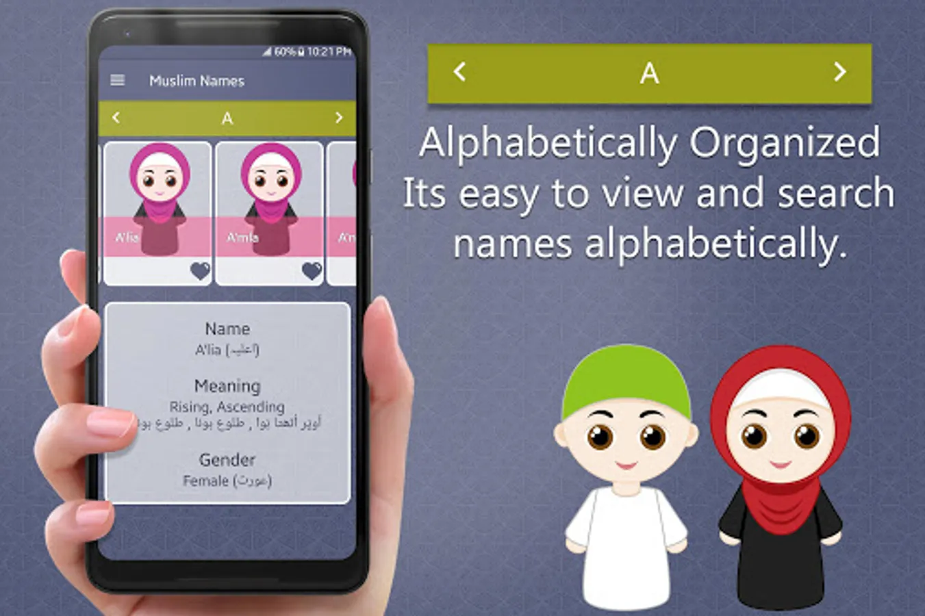 A Muslim child where ever born, and a person embracing Islam, used to be called in a new name, probably in Arabic. Names of prophets, names combined with Asmaul Husna (Names of Allah), names from history, and the traditional or modern names are being used in this regard. This app is a names dictionary of urdu names and english names with meanings.