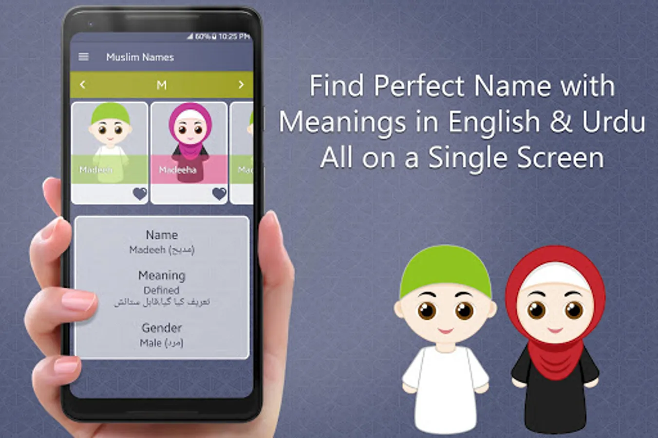 Muslim Baby Names for Baby Boys and Baby Girls contains 11,000 islamic names with meanings both in english and urdu.