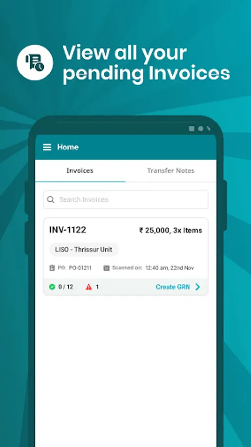 This app will be used by the store manager / godown manager to receive goods in either from the Vendor or a Transfer Note