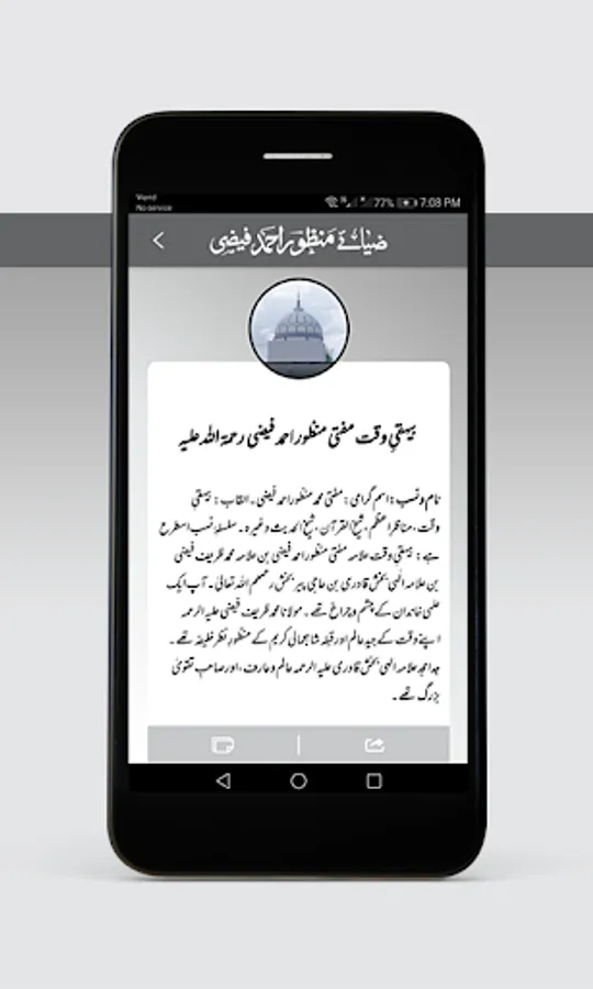 It is a very simple and user friendly application with best UI/UX. Use it yourself and induce others too. You must notify the institution on any type of error in this application of Bayhaqi-e-Waqt Hazrat Allama Manzoor Ahmad Faizi رحمۃ اللہ تعالٰی علیہ. For your useful opinions and suggestions fill the query at mobileapp@ziaetaiba.com.