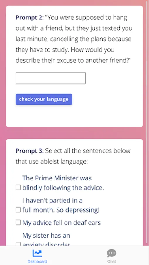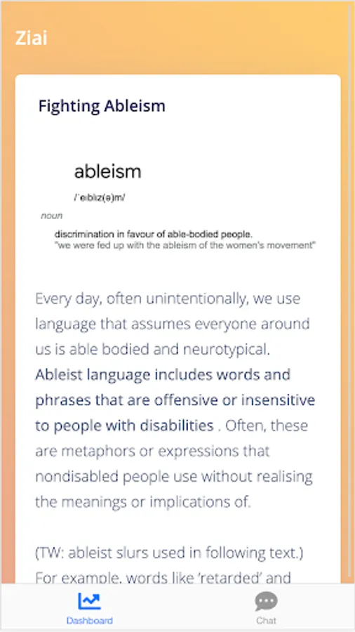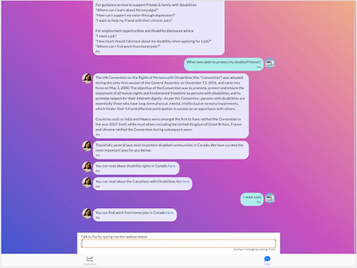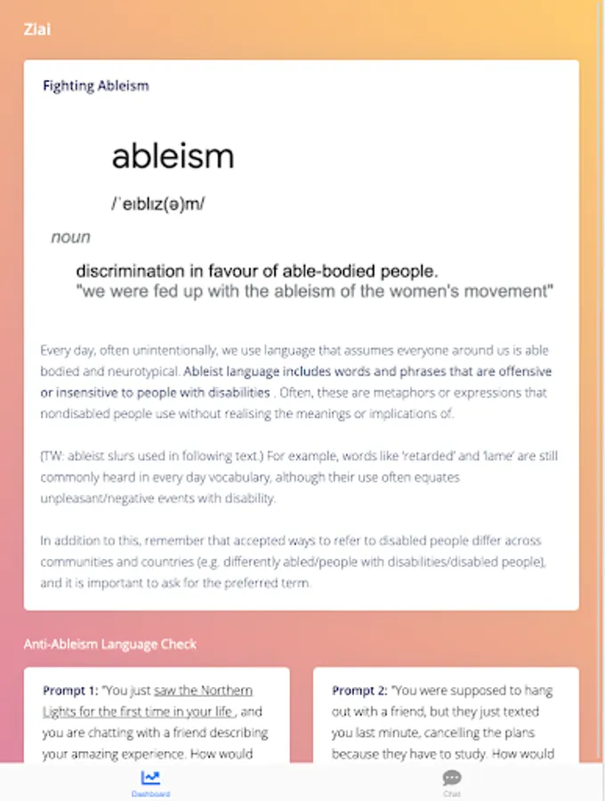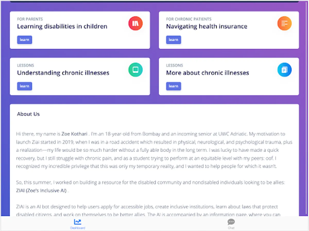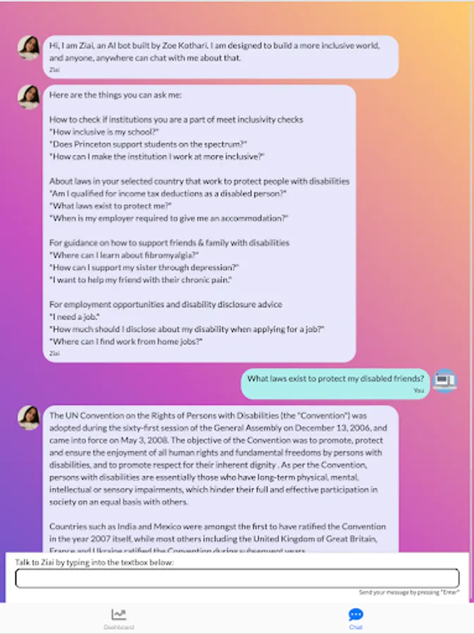 So, this summer, I worked on building a resource for the disabled community and nondisabled individuals looking to be allies: ZIAI (Zoe’s Inclusive AI) .