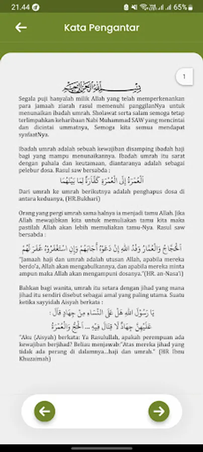 The Umrah Pilgrimage Application of the Prophet is equipped with complete information regarding the procedures and conditions for performing the Umrah pilgrimage, starting from preparations before leaving, to carrying out worship in Mecca and Medina. In addition, this application also provides information about the holy places that you can visit in the cities of Mecca and Medina, including historic mosques and the tombs of the Prophet's companions.