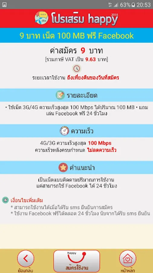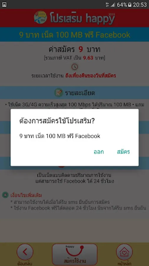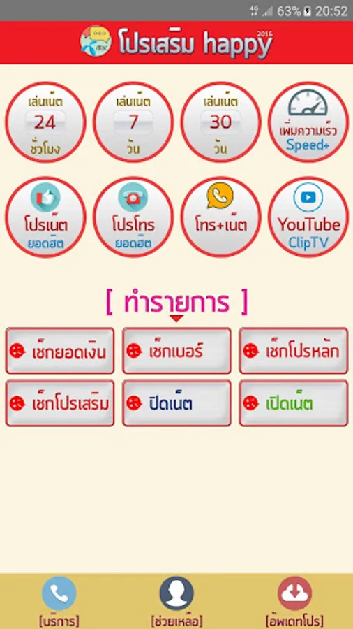 happy Special Offers Extra data is supplemented by dtac Happiness offering users tasks. App for mobile applications.